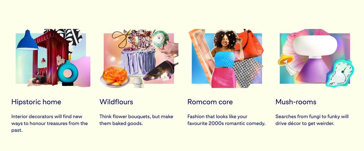Zo weet Pinterest nu al te voorspellen dat comfy kleding in 2023 plaats gaat maken voor kant, tule, ruches en glans. En wedden dat generatie Boomers en generatie Z naar manieren gaan zoeken hoe ze vintage en geërfde stukken kunnen combineren met moderne meubels.